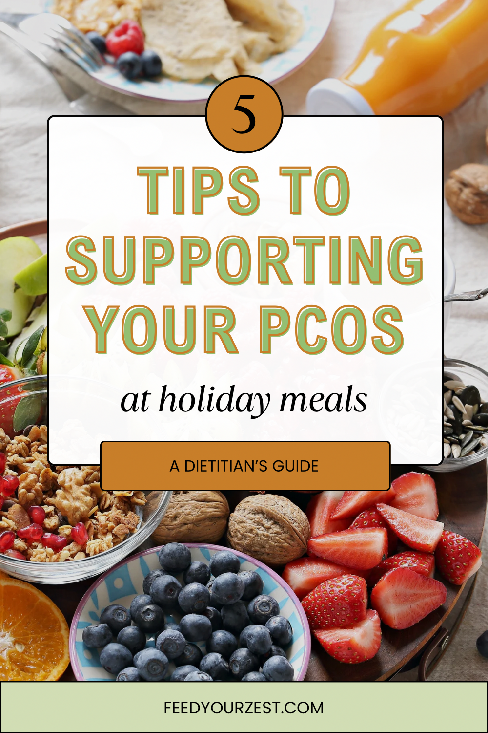 We’re coming up on Thanksgiving and heading into the holiday season which may involve increased stress and anxiety around food choices, body image, and eating in social settings. This time of year often brings disruptions to normal routines, exposure to diet talk, and pressure to navigate comments or expectations from family and friends. Eating during the holidays can be especially overwhelming if you are working hard to manage PCOS symptoms like insulin resistance and hormone imbalances. Here are 5 practical strategies to support your PCOS and still enjoy food during the holidays.